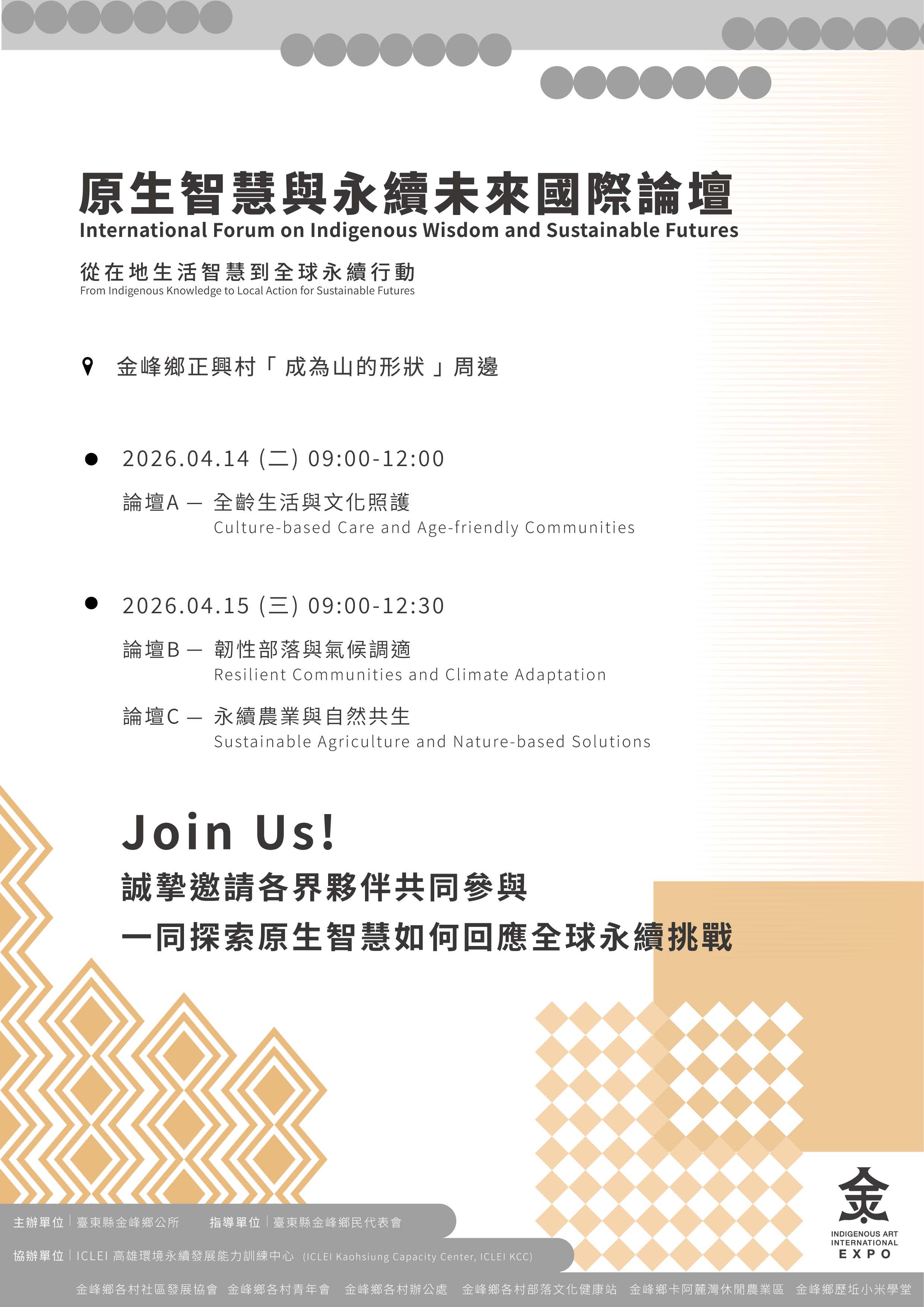 主題 2026金峰鄉原生藝術國際博覽會原生智慧與永續未來國際論壇。